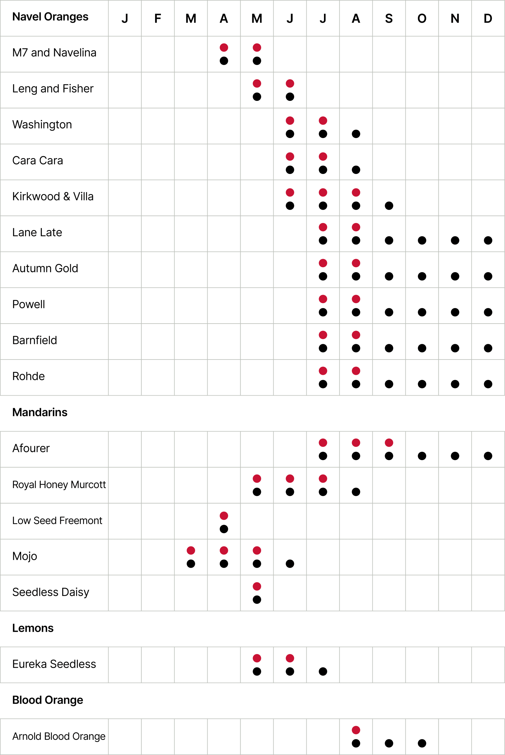 Grown in Mediterranean-like conditions with advanced protection systems, Redland Navel cultivars include Cara Cara, Kirkwood and Villa that surprise with their hidden, blush-red hearts.